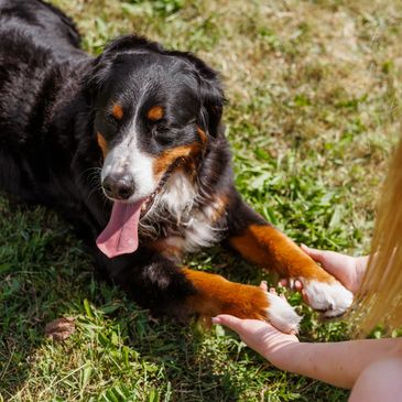 We are able to offer a one-to-one behavioural package to owners struggling with their dogs behaviours. Helping dog and owner with behavioural problems. These are by veterinary referral only. But if you feel you would benefit from support then please get in touch!